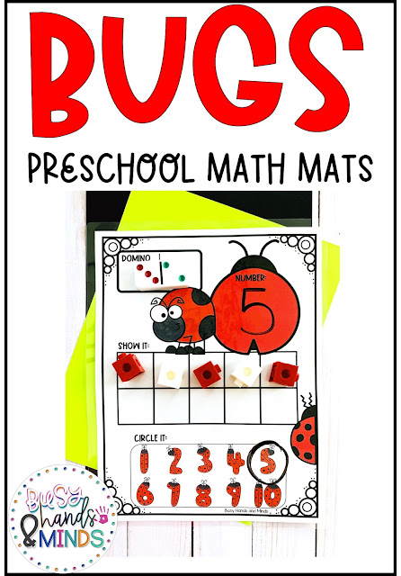 These low prep and engaging math mats are perfect for a bug theme in preschool. Each activity is just ONE page, so print, laminate, and play! Use these for centers, small groups, or independent practice.